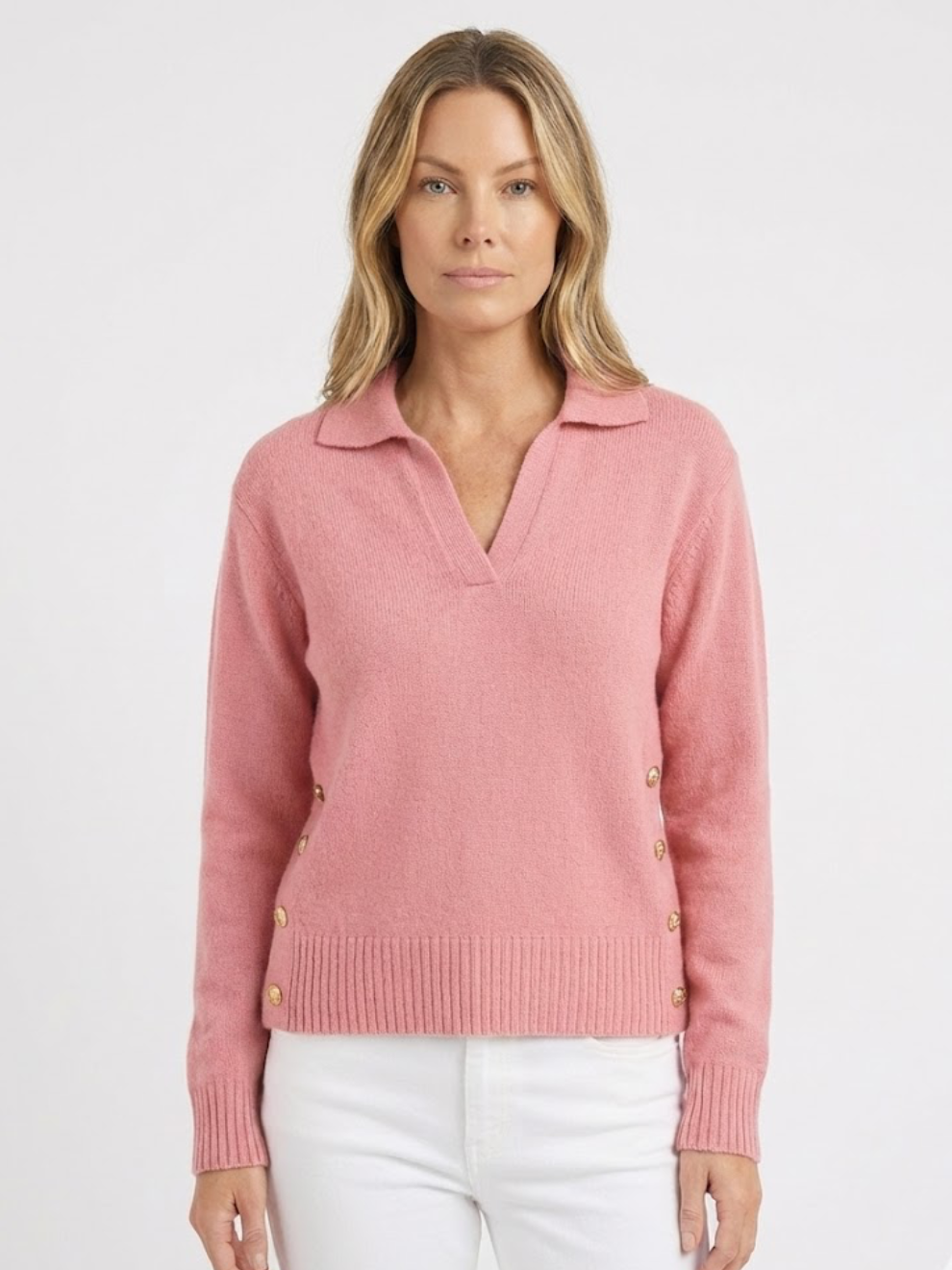 Lora – Elegant striktrøje med knapdetaljer - LyserødLyserød