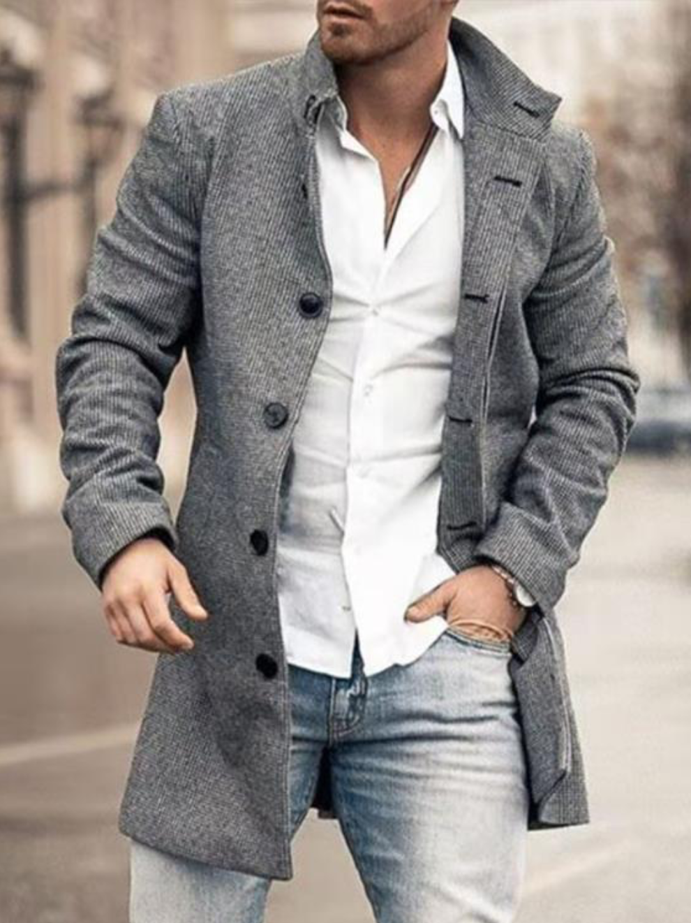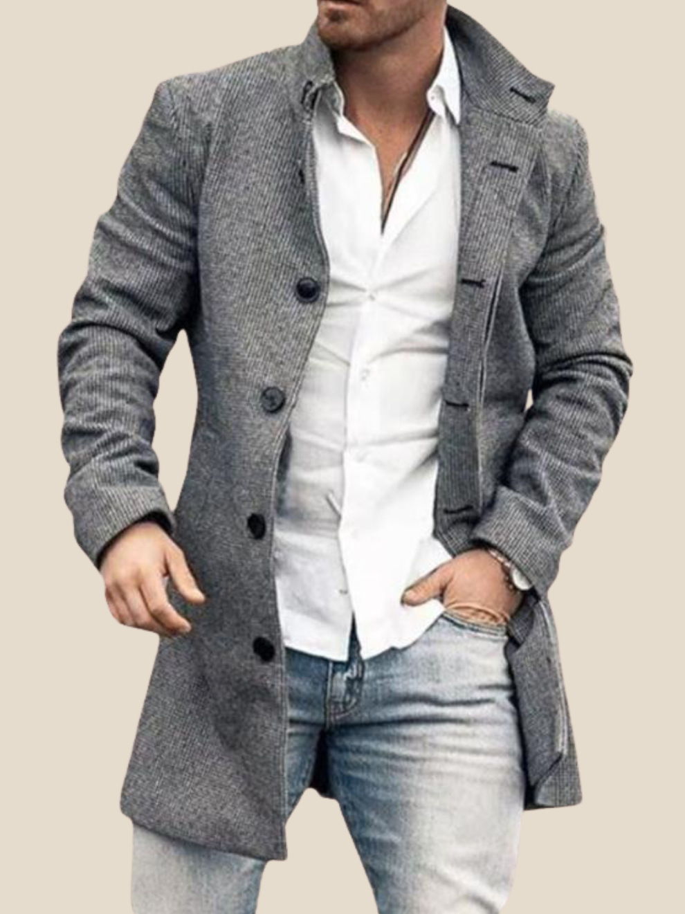 Emil | Lang mønstret frakke - Lysegrå ensfarvetLysegrå ensfarvet