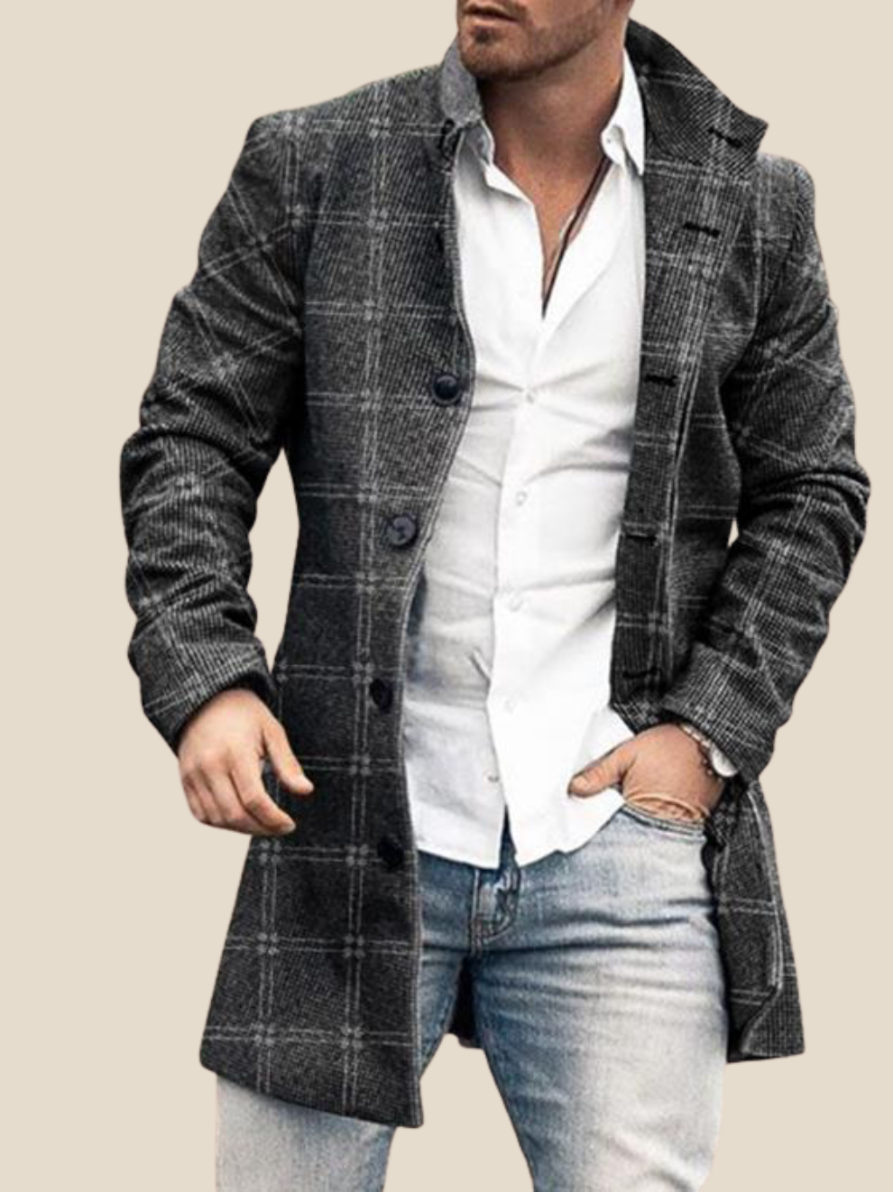 Emil | Lang mønstret frakke - Mørkegrå ternMørkegrå tern