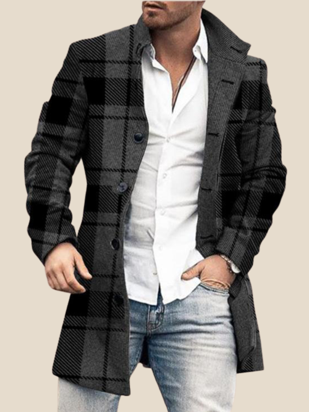 Emil | Lang mønstret frakke - Sort ternSort tern